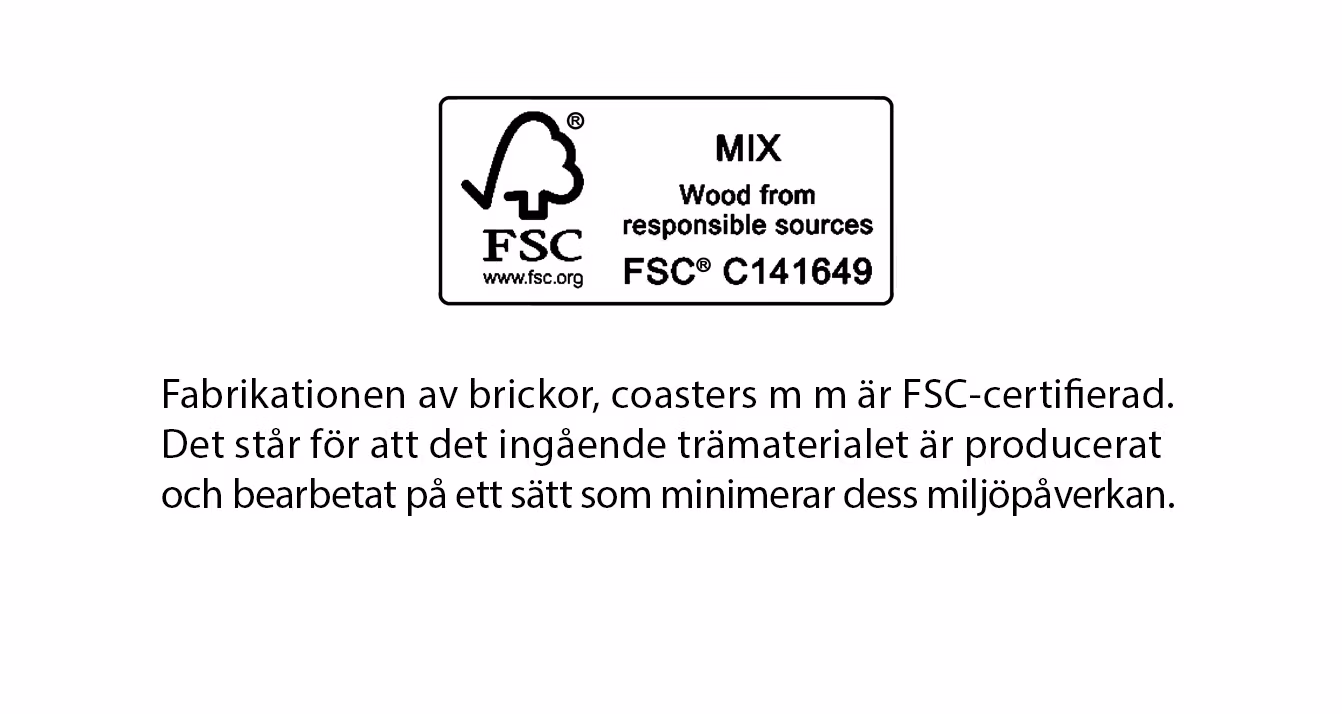 Glasunderlägg 9 x 9 cm Svensktillverkade av laminerat björkfaner. Ytan är tålig mot värme och alkohol. Baksida med beskrivande text