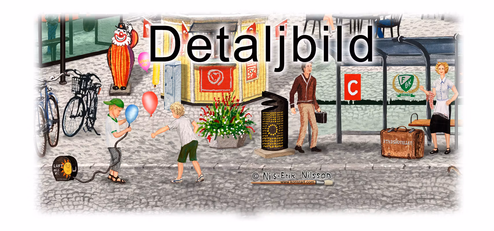 (Motivet finns även i andra format) Uppspänd på kilram. Motivet följer med på kilramens kanter. På baksidan finns information om staden och motivet.